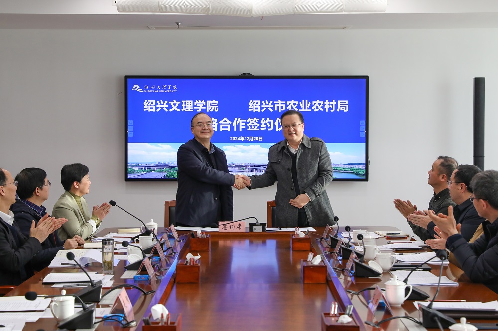 12月20日下午,学校与绍兴市农业农村局战略合作签约仪式在行政楼东418会议室举行。校长赵阳,校党委副书记黄坚,校党委委员、宣传部长宋浩成,绍兴市农业农村局局长吕田,局党委委员、绍兴市农业科学研究院院长杨鲁,局总农艺师沈宇青及相关部门负责人出席活动。