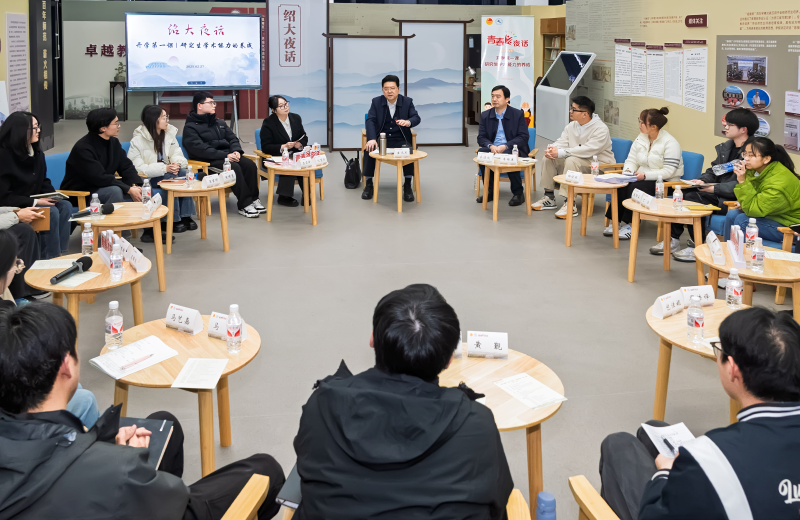 2月27日晚,“绍大夜话”第二十七期之“青春夜话”第十九期在青藤书院举行。校党委书记崔凤军与研究生代表面对面交流,共同探讨“研究生学术能力的养成”,为同学们答疑解惑。校党委委员、宣传部部长宋浩成,校办公室、研究生院、团委负责人参加活动。