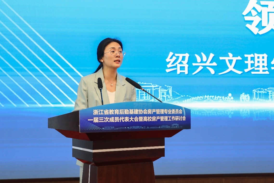 赵浪平在致辞中介绍了我校及学校房产管理工作的概况,她指出,学校高举习近平新时代中国特色社会主义思想伟大旗帜,全面推进更名设置绍兴大学、获批博士学位授予单位“两大历史任务”,学校高质量发展离不开房屋资源的保障,要进一步探索公用房管理改革,转变高校房产管理理念,创新房产管理体制,进一步提升高校房产管理水平。她表示,在浙江省教育后勤基建协会的带领下,以及各兄弟院校的努力下,我省高校房产管理水平必将更上一个台阶。