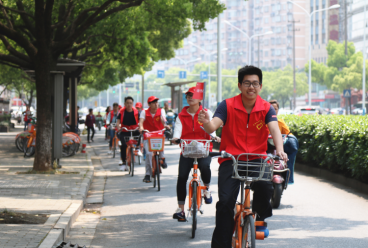 4月22日,学院入党积极分子沿着风则江开展剿灭(劣)Ⅴ水环保骑行活动。大家手持污水、节能减排等有环保口号的小红旗,向市民发起倡议,呼吁大家共治污水,支持节能环保,绿色出行。