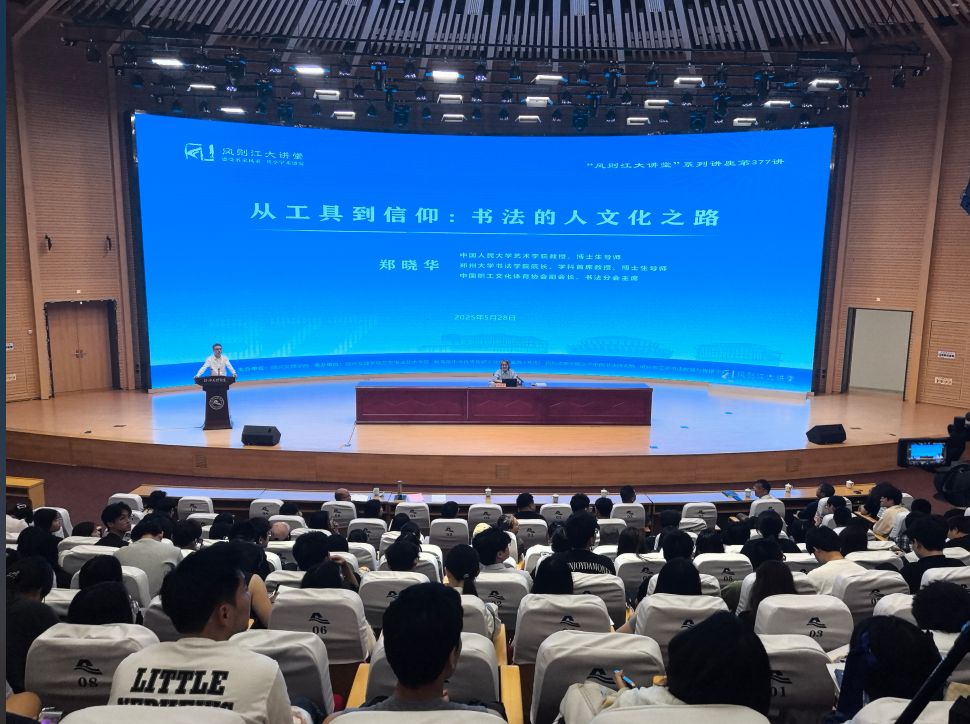5月28日晚,“风则江大讲堂”第377讲专题讲座在风则江大讲堂举行,中国书法家协会原分党组副书记、秘书长,郑州大学书法学院院长、学科首席教授,中国人民大学艺术学院博士生导师郑晓华教授作报告,校党委副书记张宏、副校长陈均土、兰亭书法艺术学院党委书记孙仕龙、院长刘小华及全校500多名师生代表聆听讲座。讲座由校党委委员、组织部部长、人事处处长黄曼主持。
