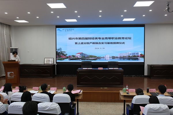 上虞分院副院长蒋洁蕾致辞。希望此次论坛能够成为各位专家同仁畅所欲言、深入交流的平台,为绍兴市财经类专业职业教育的繁荣发展贡献智慧和力量。